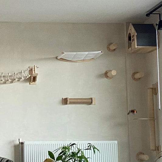 Cat Wooden Furniture Wall Mounted Scratching Posts Hammock Platform Extended Cat Scratching Post for Cat Health and Play indoors