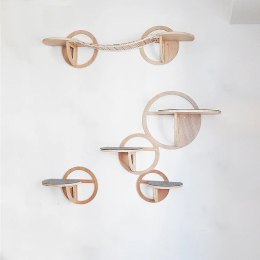 1 Piece Wall Mounted Cat Wood Shelf Cat Hammock and Jumping Platform with Stairway for Kittens Indoor Furniture Playing