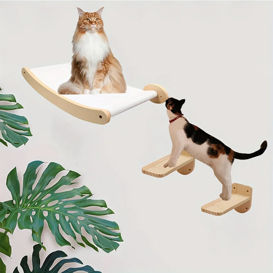 Cat Hammock Cat Shelves Tree Tower Ladder Wooden Furniture for Kitten Saving-space Cats Pet Products Cat Climbing Wall