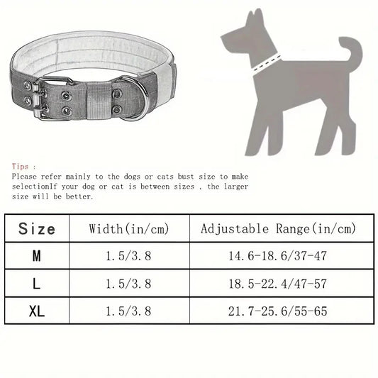 1pc Medium to Large Nylon Tactical Pet Dog Collar - Adjustable and Durable, Suitable for Medium and Large Dogs.