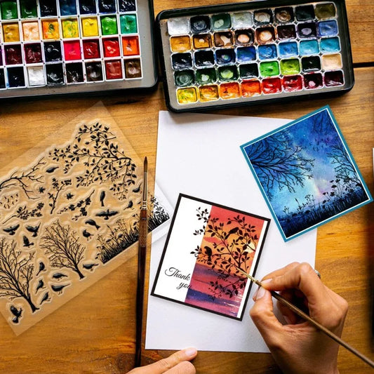 1pcs Bird Branch Silhouette Clear Stamps Birds Trees Clear Rubber Stamps Silicone for DIY Scrapbooking Photo Album 6.3x4.33inch
