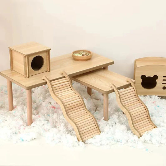 Smooth Hamster Hideaway Wooden Hamster House with Climbing Ladder Small Pet Castle Arch Bridge for Dwarf Mice Gerbils Small Pets