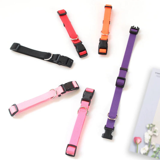 Solid Color Imitated Nylon Dog Collars for Cats Outdoor Walking Lost Avoid Pet Accessories Multi Colors Basic Dog Harness XS-XL