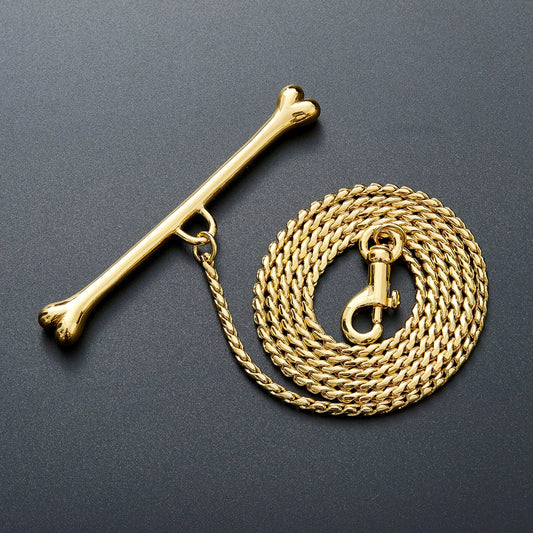 Stainless Steel Cuban Chain Dog Leash for Small Medium Large Dogs, 3ft Strong Chew Proof 18K Gold Dog Rope Chain with Bone Hand