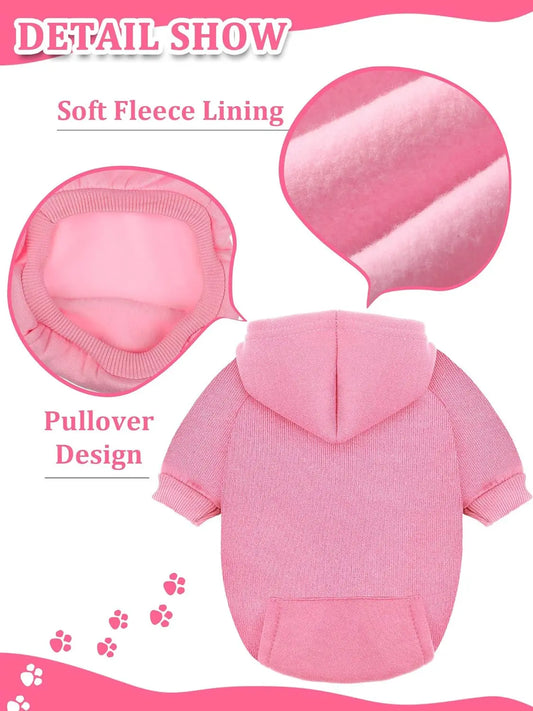 Dog Hoodies Solid Color Sweatshirts with Pocket Pet Pullover Coat Spring Autumn Clothes for Small Dogs, Puppy Cat Sport Costume