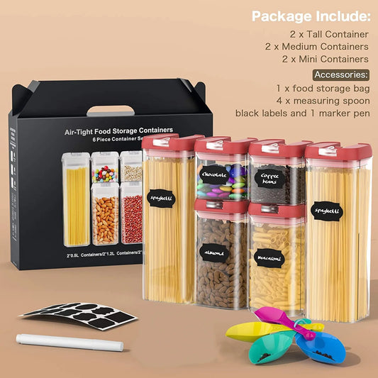 7pcs/set Food Storage Containers Plastic with Lids Kitchen Storage for Rice Sugar Flour Pasta Cereal Storage Containers