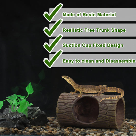 UXCELL Pets Reptile Hide Cave Habitat Shelter Resin Tree Reptile Artificial Woods with 2pcs Suction Cup Habitat Decoration