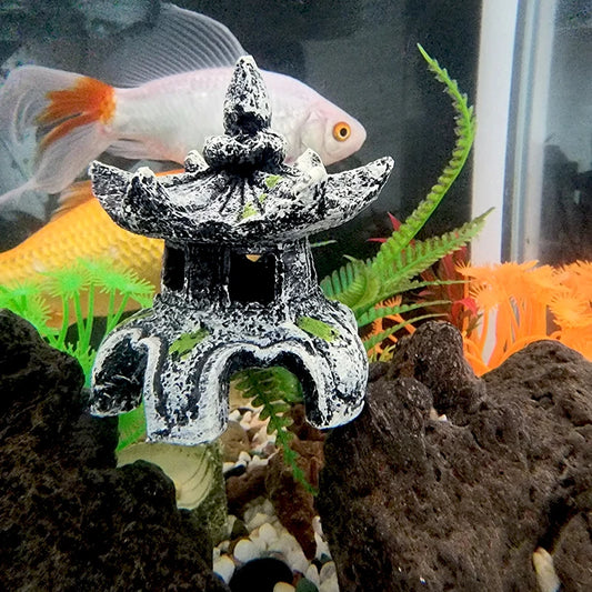 Resin Artificial Fish Tank Ancient Pavilion Decoration Aquarium Rock Cave Building Decoration Aquatic Landscaping Ornament Decor