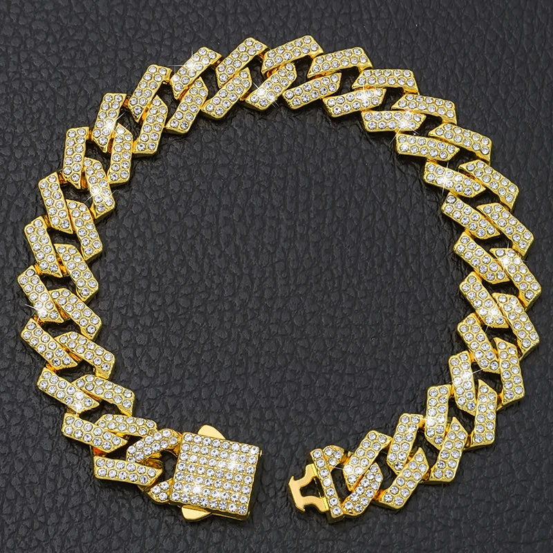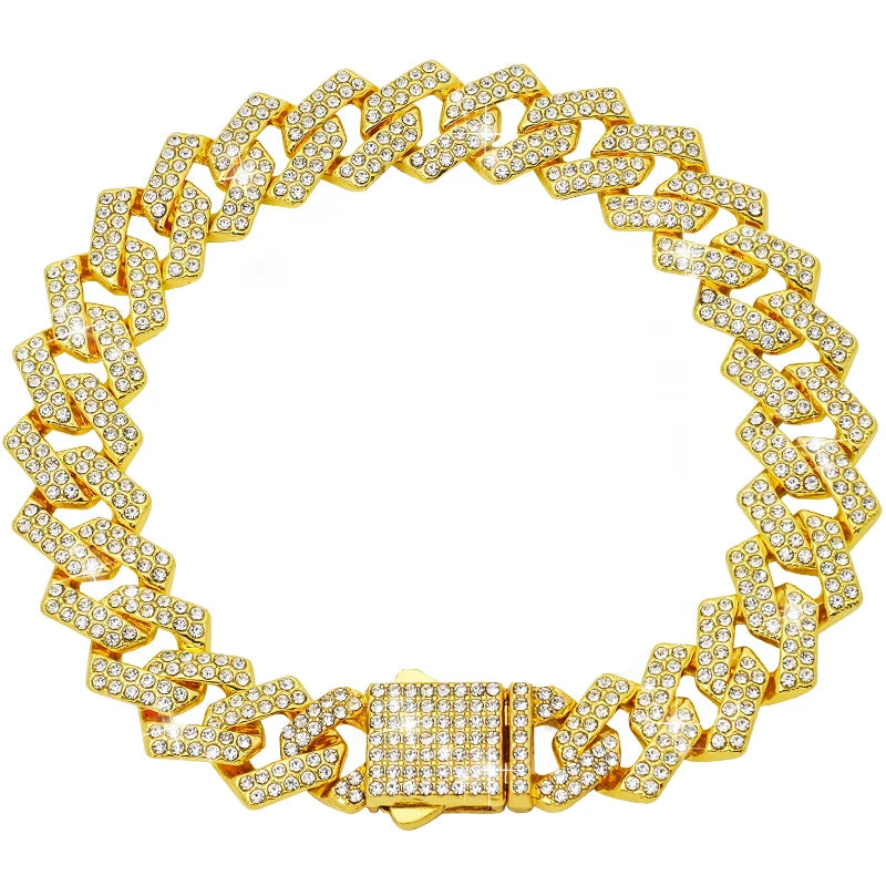15MM Bling Jewelry Diamond Luxury Dog Chain Collar Cuban Gold Chains for Dogs and Cats Necklace