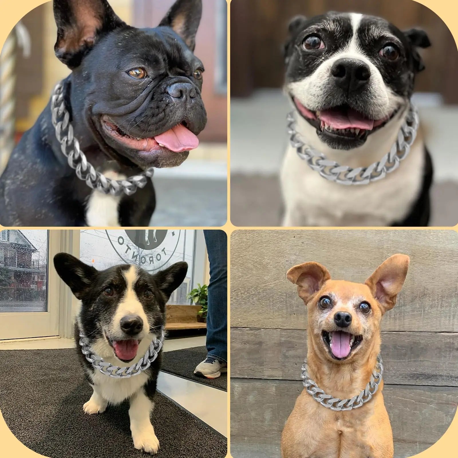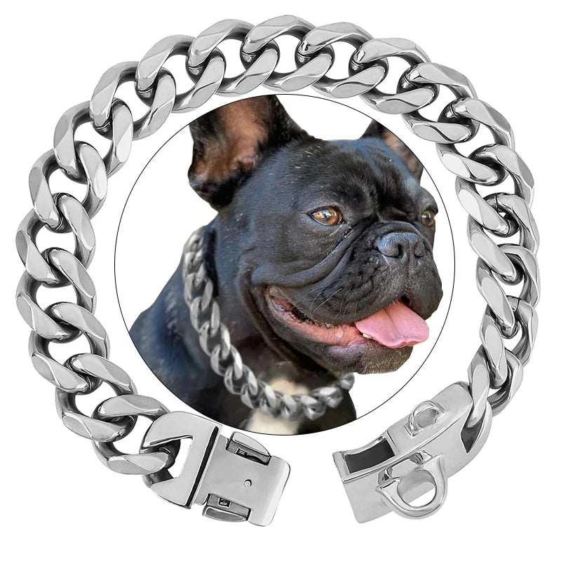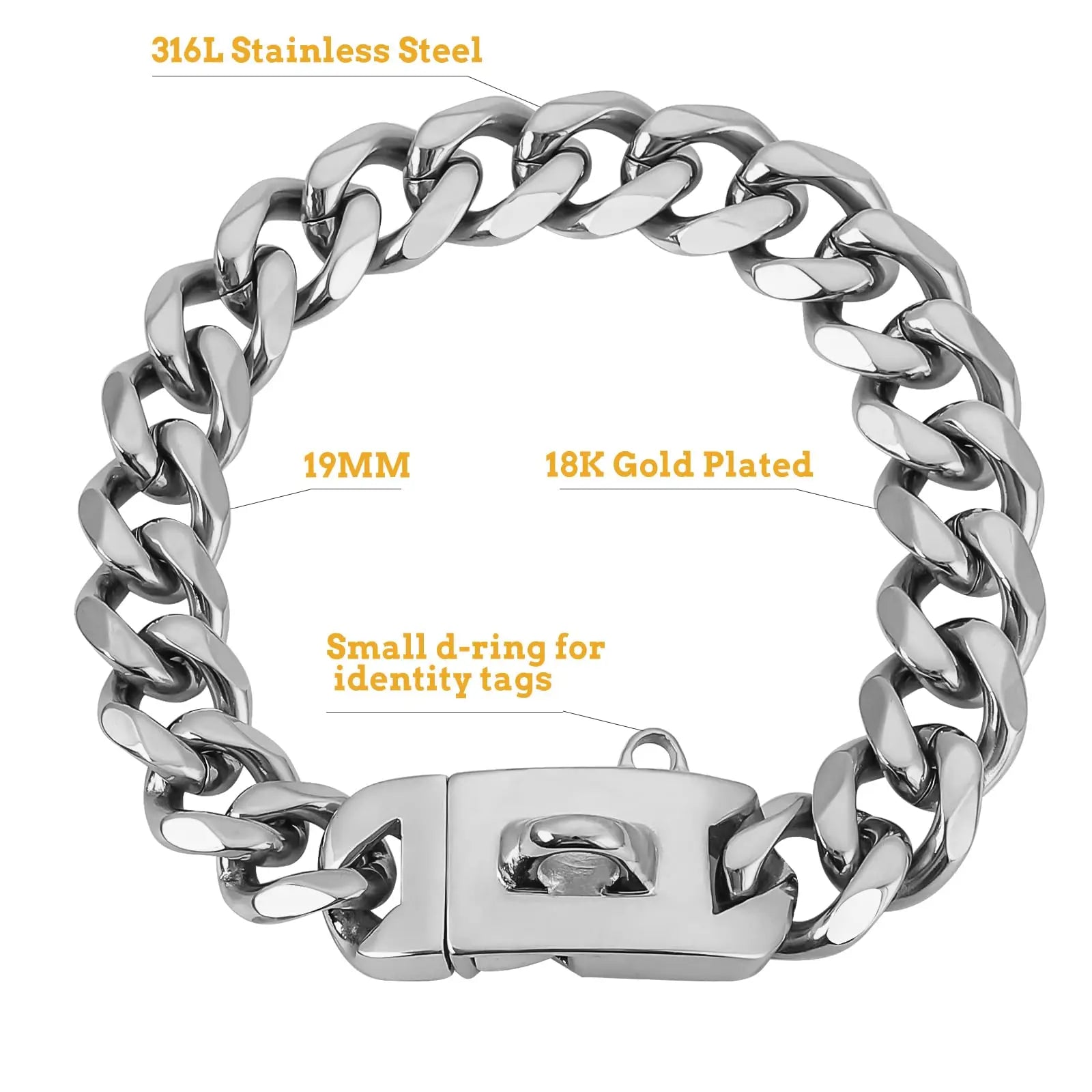 Steel dog chain: made of 316L stainless steel, with maximum strength and durability, 18K gold-plated, super strong dog collar, even if it bears 150 pounds (about 68 kg) of force, it will not be affected.