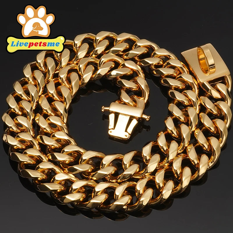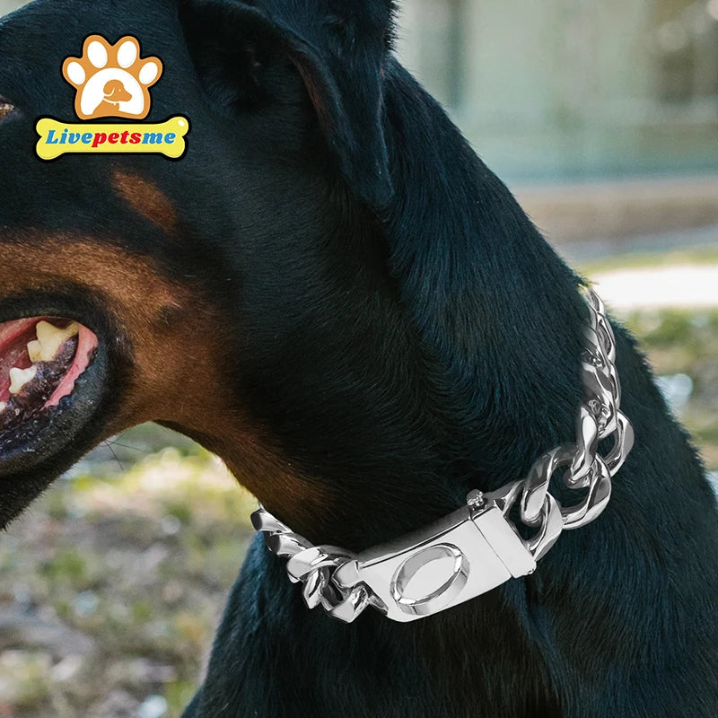 19MM Stainless Steel Dog Collar Choker Metal Cuban Link Chain Luxury Pets Necklace for Dogs Walking Heavy Duty