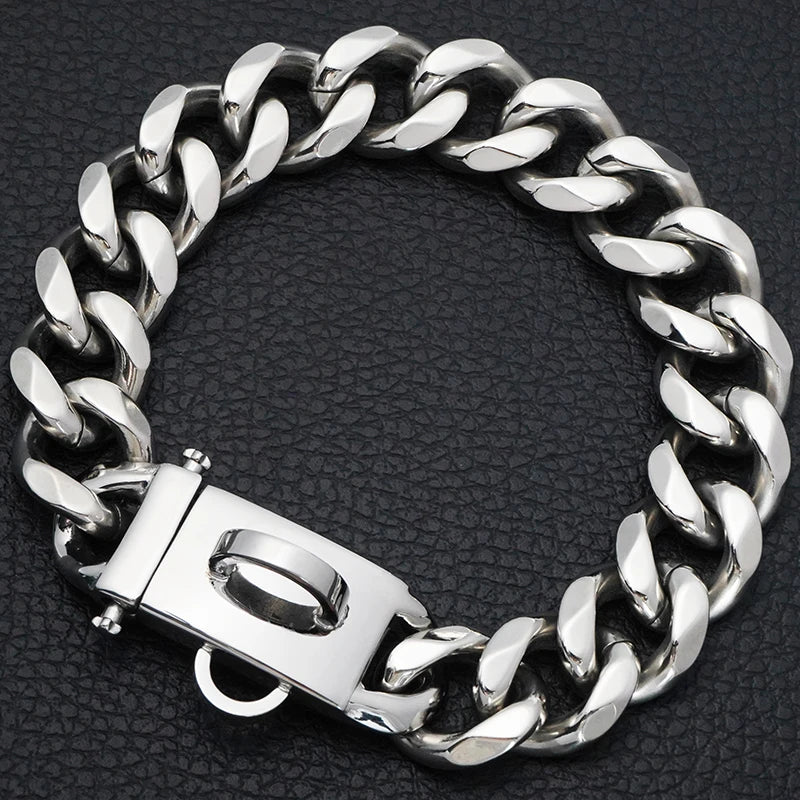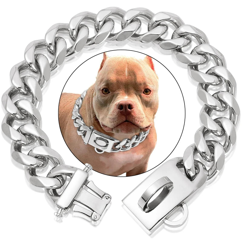 19MM Upgrade Heavy Duty Gold Dog Collar with Solid Buckle Stainless Steel Cuban Link Luxury Metal Pets Walking Collar Choker