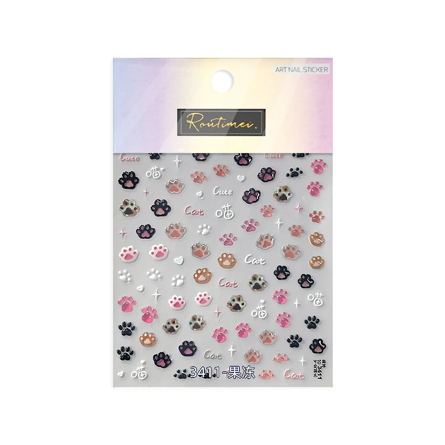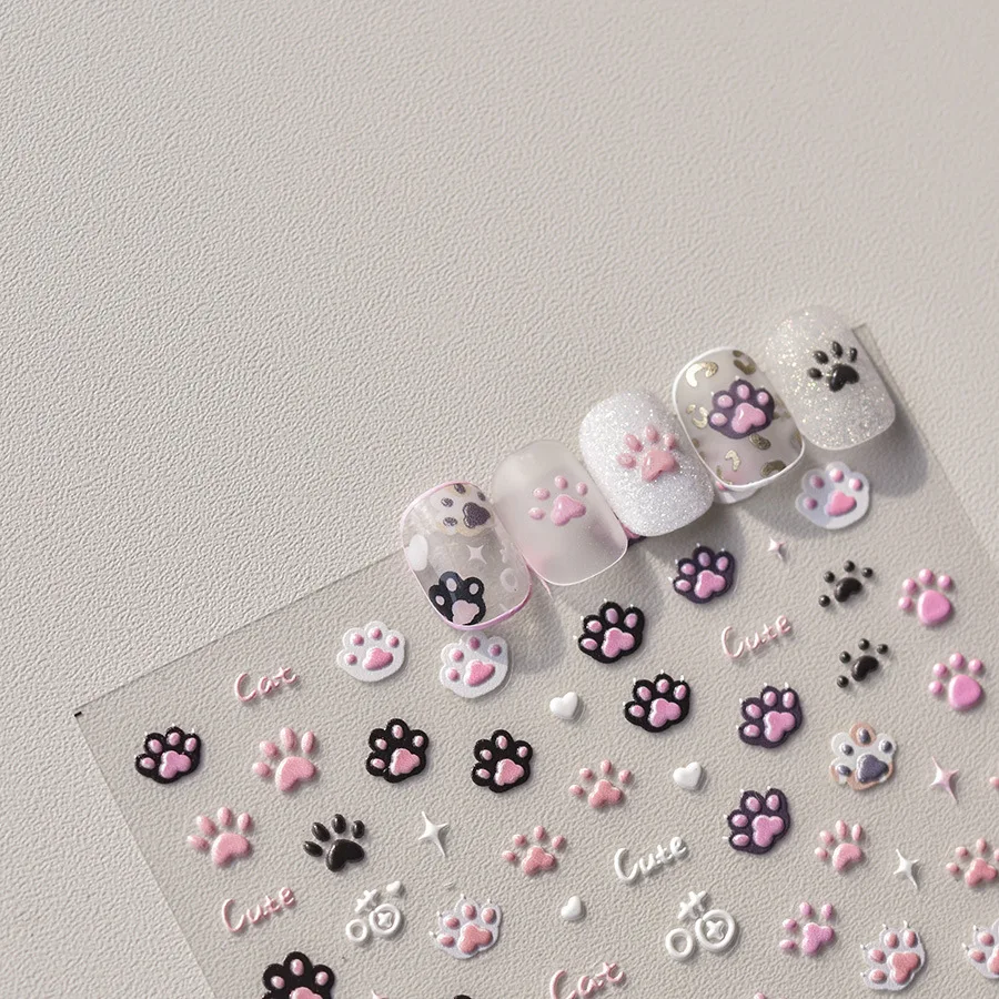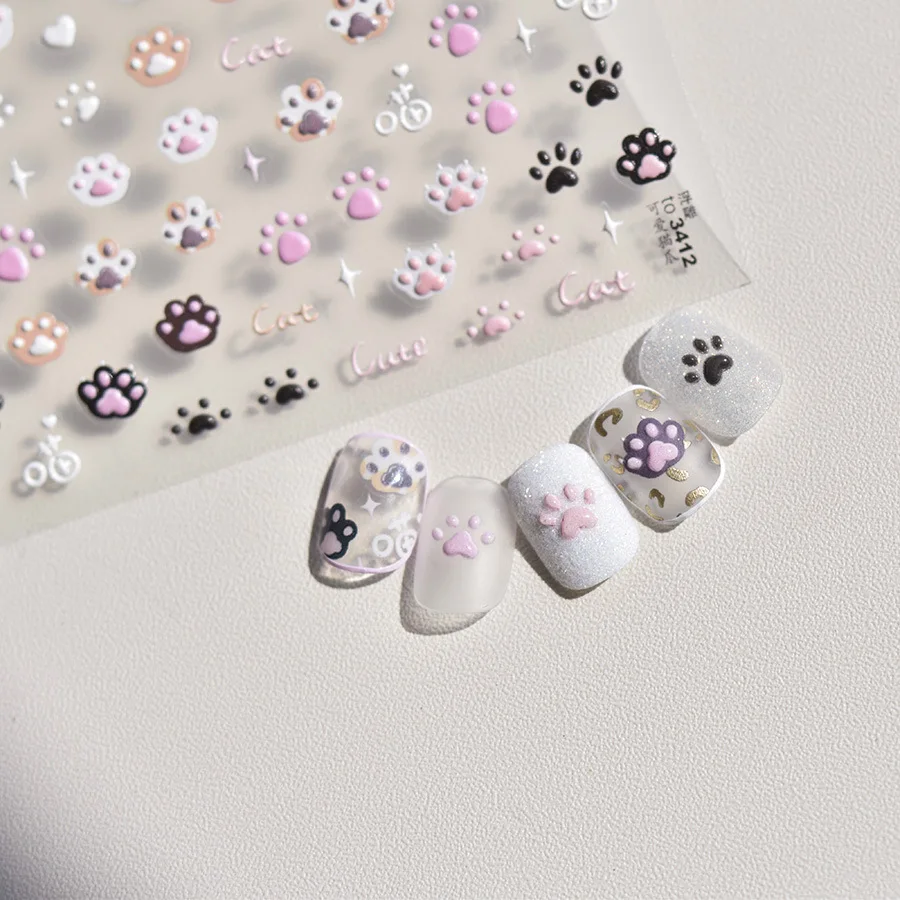 1pcs Cute Cat Claw 3D Jelly Relief Nail Stickers 3D Adhesive Stickers For Nails DIY Japanese Kawaii Slider Nail Art Decorations