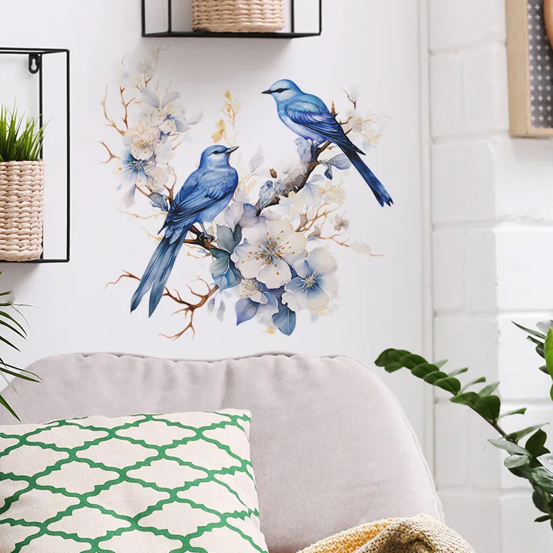 1PCS Painted Branches Flower Birds Bedroom Living Room Porch Home Background Decoration Beautify Wall Paste Self-adhesive