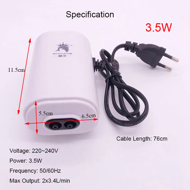 Silent 220V 3.5W 8W 12W Aquarium Air Pump Fish Tank Mini Air Compressor Oxygen Pump Aquarium Fish Tank Oxygen Pump Two Outputs