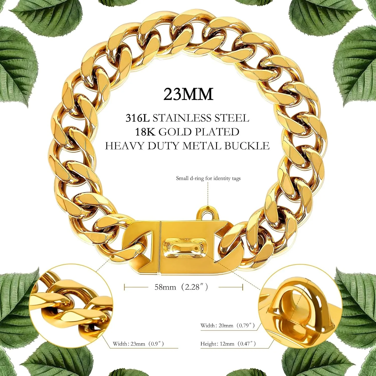 23MM Gold Dog Collar,Dog Chain Collars with Cuban Link Dog Collar,Heavy Duty Training Collar Chew Proof for Medium Large Dogs