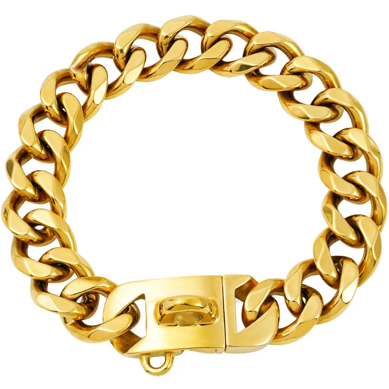Ultra Strong Dog Collar:Made of 316 Stainless Steel ,23mm Wide, laboratory tested to hold up to 790 lbs, 18K Gold Dog Collar collar for Large Dogs -Strong Steel Links for Medium Big Breeds - Rottweiler, Mastiff, Cane making this the perfect dog collar for large dogs.