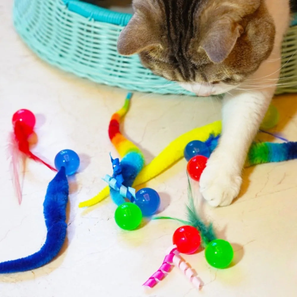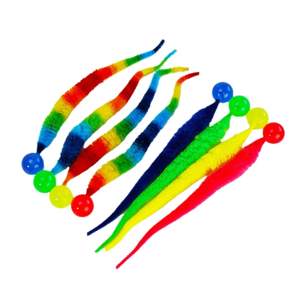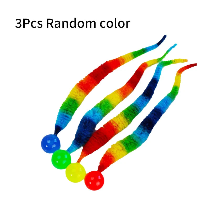 3Pcs/Set Pet Toy Caterpillar Elastic Ball Cat Toy Rainbow Worm Bouncing Ball Indoor Cat Caterpillar Elastic Interactive Toy
