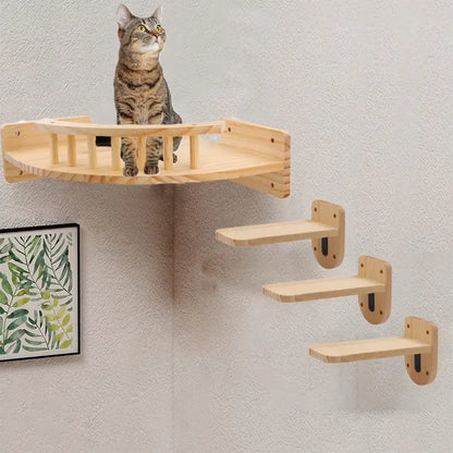 4 Pieces Cat Wall Mounted Shelves Set Corner Observation Platform with Small Jumping Platform for Kitten Climbing and Sleeping