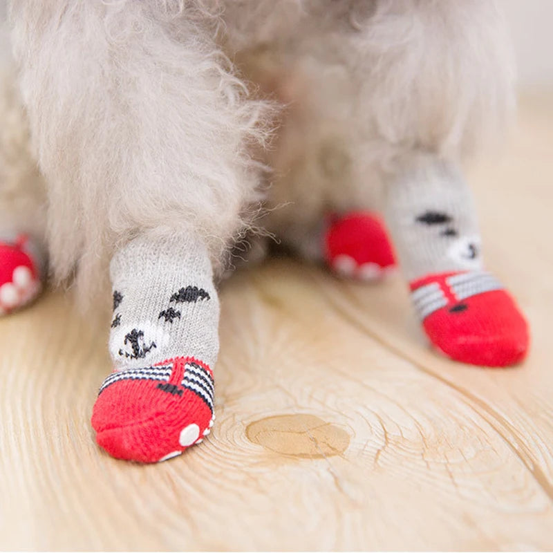 4pcs/Set Printed Pet Dog Socks High Elasticity Small Big Puppy Chihuahua Thick Paw Protector Winter Warm Booties Pet Accessories