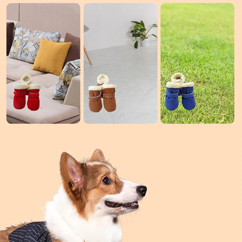 4pcs Winter Warm Dog Protective Shoes for Small Dogs Waterproof Yorkshire Snow Boots Anti-slip Chihuahua Socks for Cat Puppy