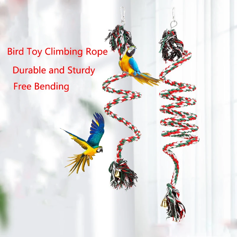 50/100/150/200cmParrot Bird Standing Toys Cotton Rope Colorful Toy Chew Perches for Bird Cage Standing Woven Rope Bird Accessory