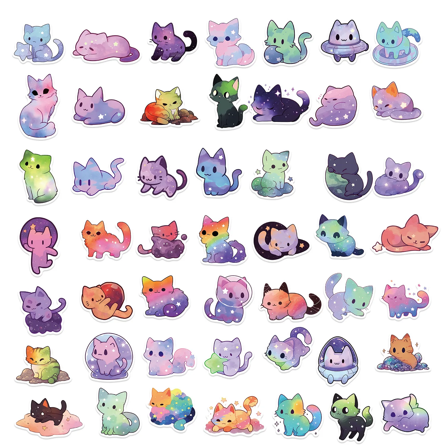 50Pcs Cute Aesthetic Cat Cartoon Rainbow Starry Sky Cat Stickers, Waterproof Stickers for Water Bottle, Laptop, Phone,