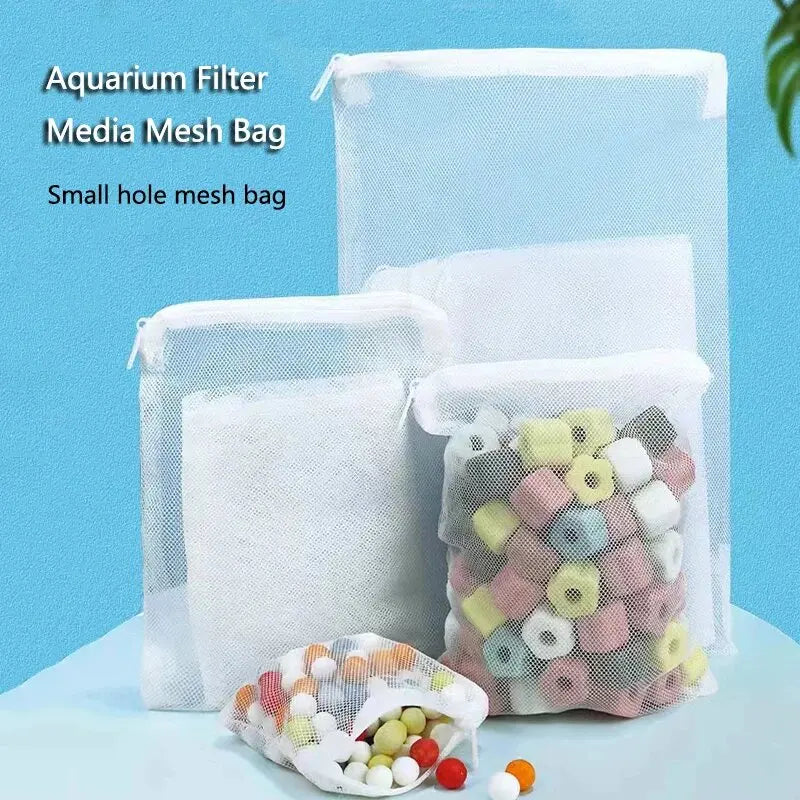 5pcs White Dense Hole Aquarium Mesh Bag Aquarium Pond Filter Net Bag For Bio Ball Carbon Media Aquarium Fish Tank Isolation Bag