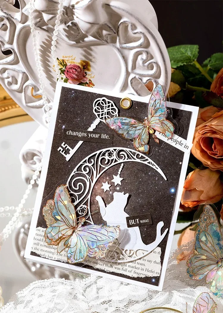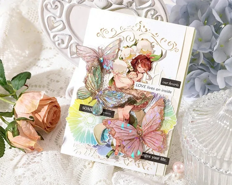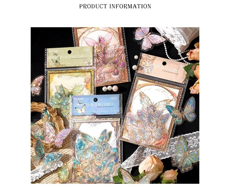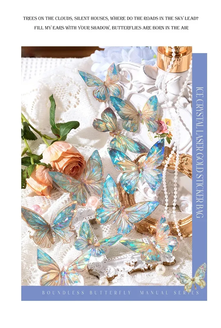 5Style 20pcs/pack INS Butterfly PET Sticker Pack Ice Crystal Laser Gold DIY Handbook Decoration 3D Scrapbook