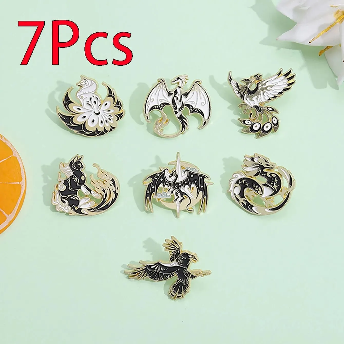 7Pcs Gothic Punk Bird Enamel Pins Custom Animal Cartoon Brooches Jewelry Clothes Accessoris Shirt Collar Lapel Badge Pin for Fri