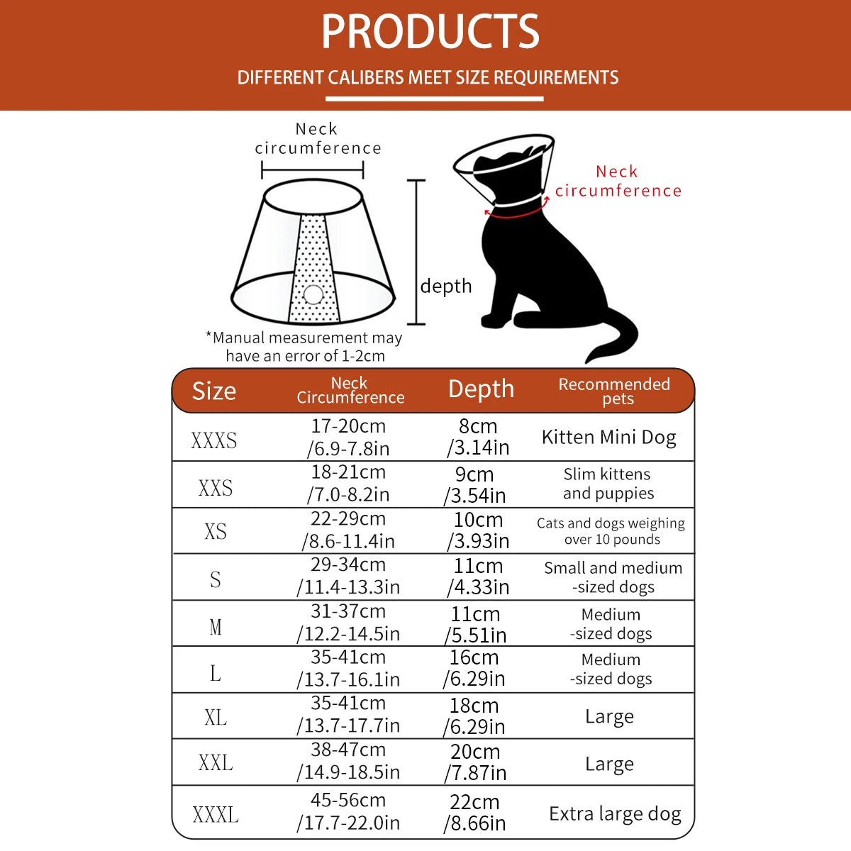 • SUITABLE FOR MOST CATS AND SMALL DOGS - Neck girth 7.2-9.0inch, width 5.0inch, the elizabethan collar is suitable for most cats, small dogs and mini dogs. Different suppliers have different size guide, please refer to our size chart before ordering, if your pet is close to the maximum size, you may consider ordering larger one