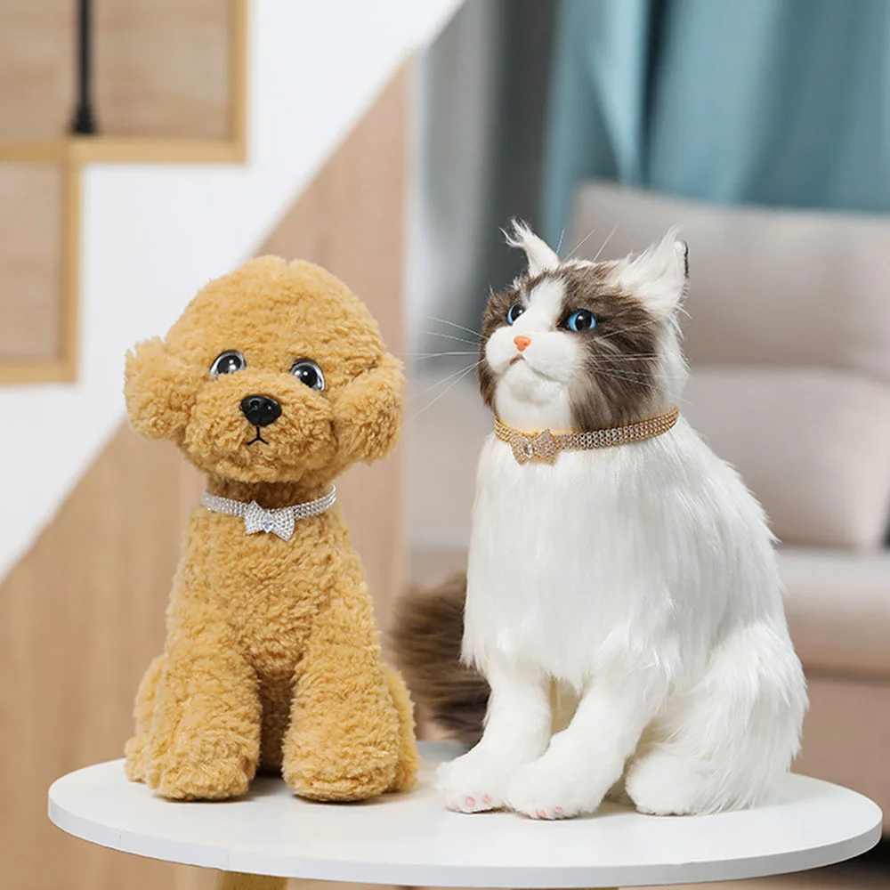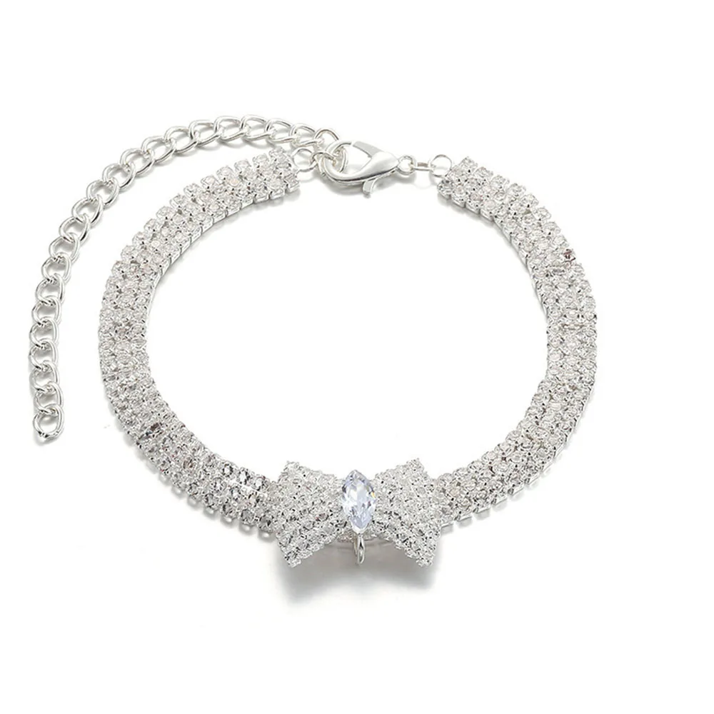 Adjustable Crystal Pet Necklace Cute Rhinestone BowTie Dog Collars Kitten Puppy Jewelry Necklace Photo Props for Small Animals