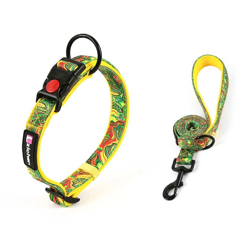 Adjustable Pet Dog Collars Color Graffiti Soft Cotton Leash Accessories Walking Exercise Safety French Bulldog Puppy Chain
