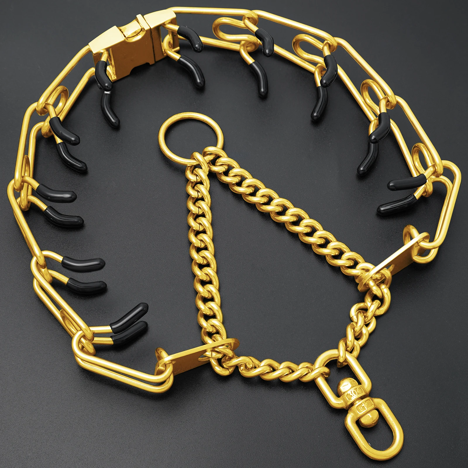 Adjustable Pinch Collar for Dogs,Gold Dog Training Collar Prong Collar with Quick Release Buckle for Small Medium Large Dogs