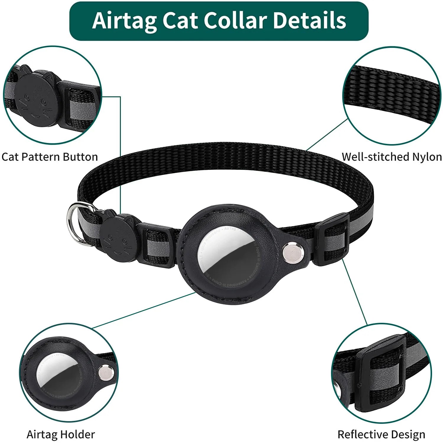 SAFE BREAKAWAY BUCKLE DESIGN: Our airtag cat collars feature sturdy breakaway buckle, which allows your cat to quickly break free when it is in danger outdoors or hanging on a tree. In addition, the AirTag cat collar has a reflective strip so you can easily find your cat at night. This makes it safer for cats to chase or play outside.