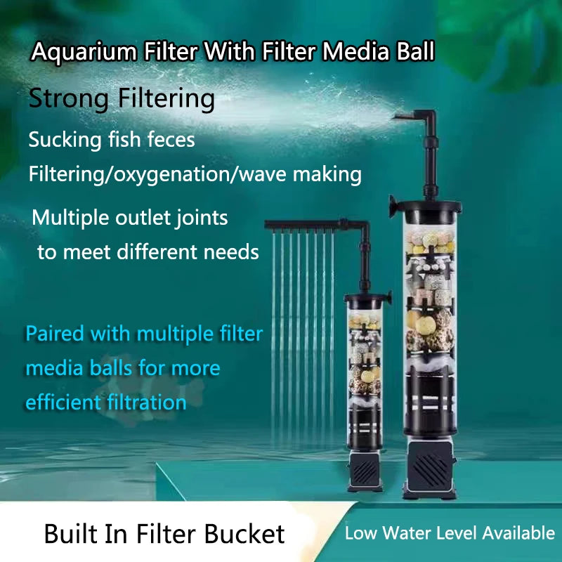 Aquarium Filter 4 in 1 fish tank filters for Fecal Suction Water Purification High-efficiency Filtration With Filter Balls