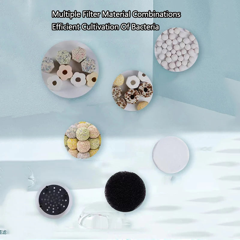 Equipped with various filtering materials, effectively cultivating nitrifying bacteria, providing a more comfortable environment for fish