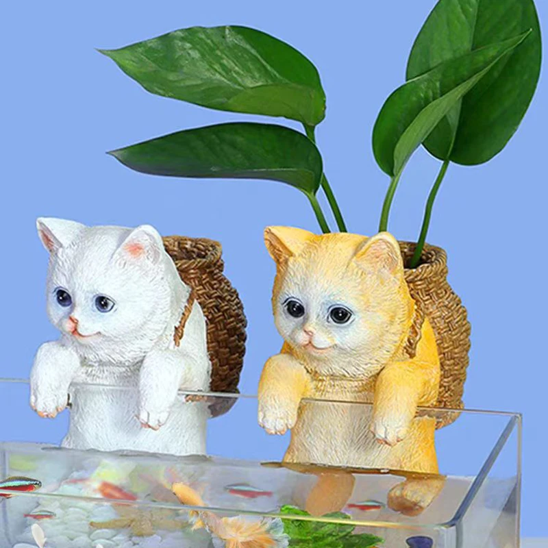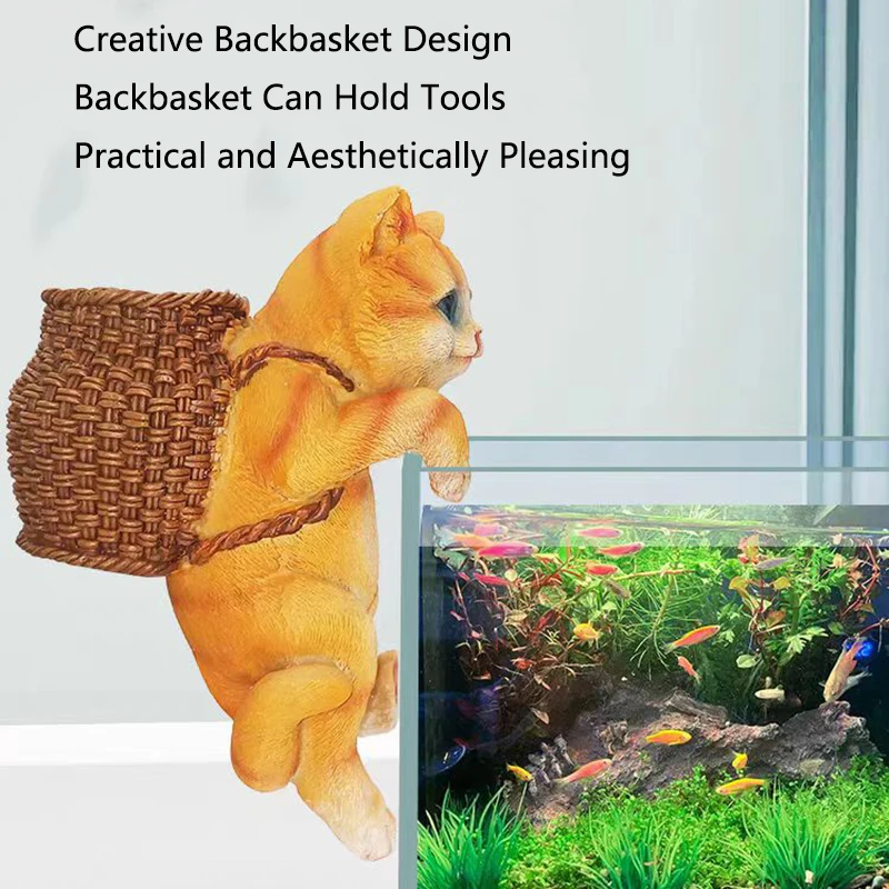 Aquarium Hanging Cat Backpack Hanging Ornaments Fish Tank Tool Storage Basket Desktop Flower Pot Landscaping Decoration Cute