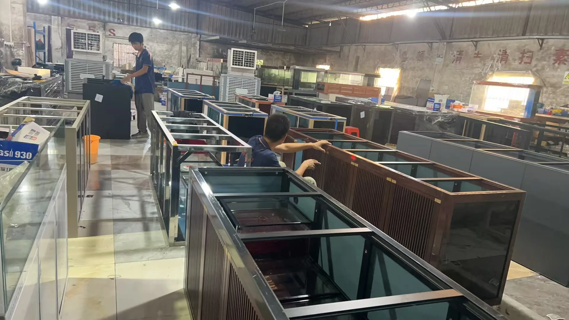2.Glass materials: Glass materials have ordinary glass and ultra-white glass, ultra-white glass transparency is higher, the price is a little more expensive. Customers can also choose the aquarium front super white, two super white, three super white to match. (Super white front is the aquarium viewing front with super white glass, the other three sides use ordinary glass, which can achieve good viewing and save some money, kill two birds with one stone; In general, the viewing requirements are high and the fish tank is placed,ultra-white glass is used for important occasions, and 80% of fish tanks on the market are ordinary glass).