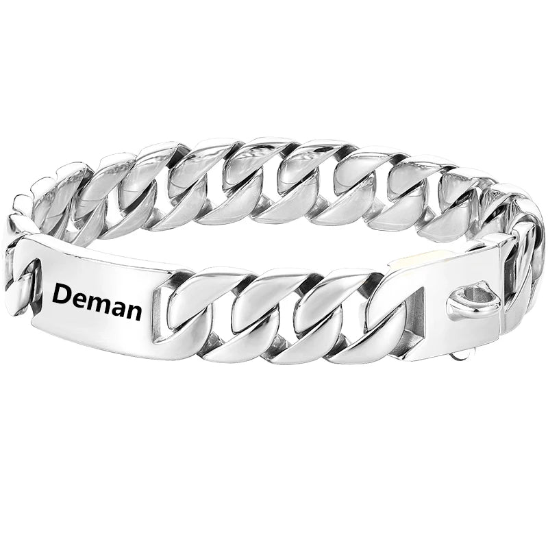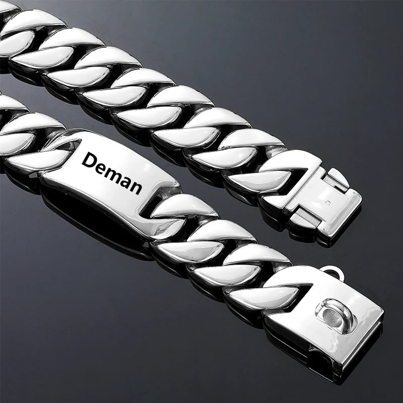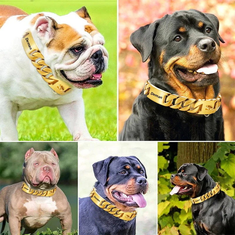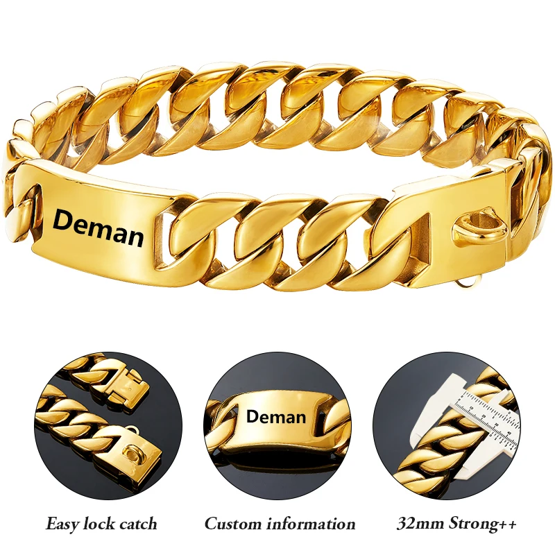 Big Dog Chain Collar Free engraving Personalized 32mm wide Stainless Steel Metal Cuban link Chew Proof Pet Collars For large dog