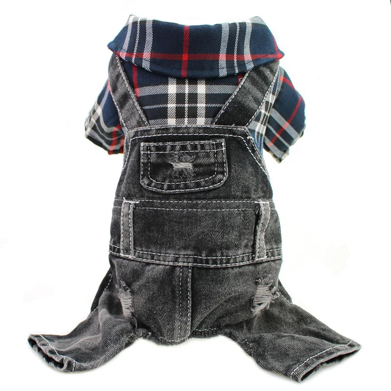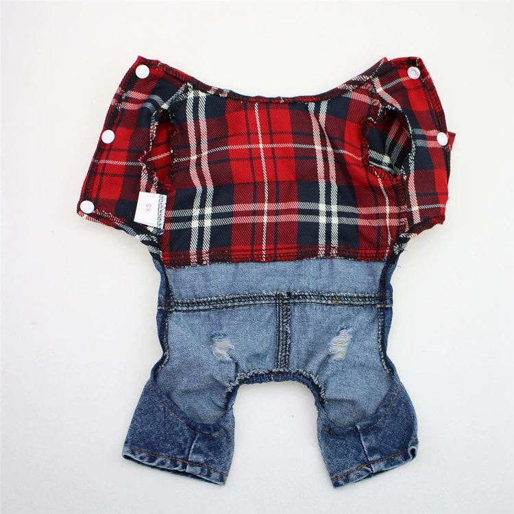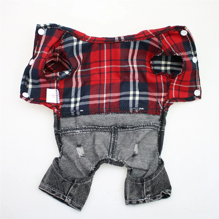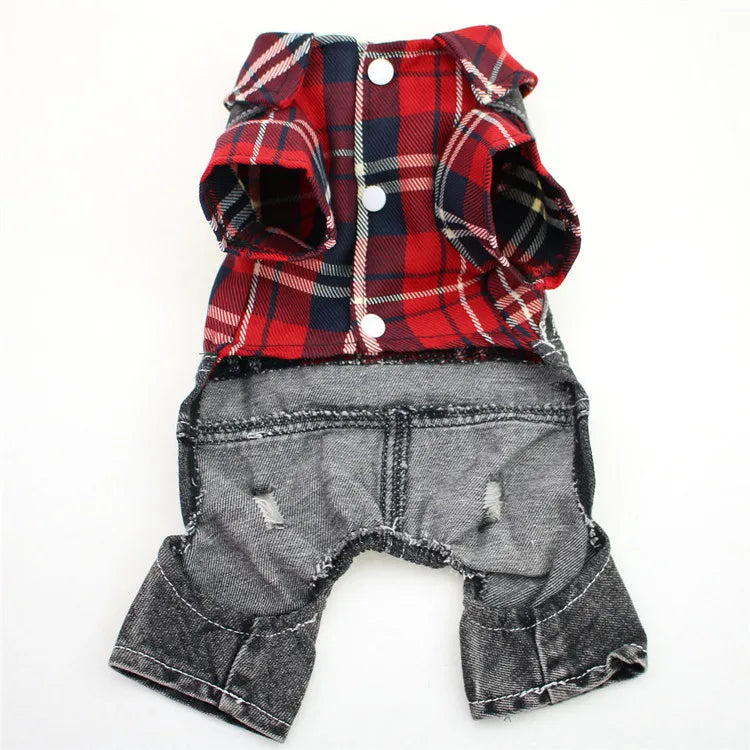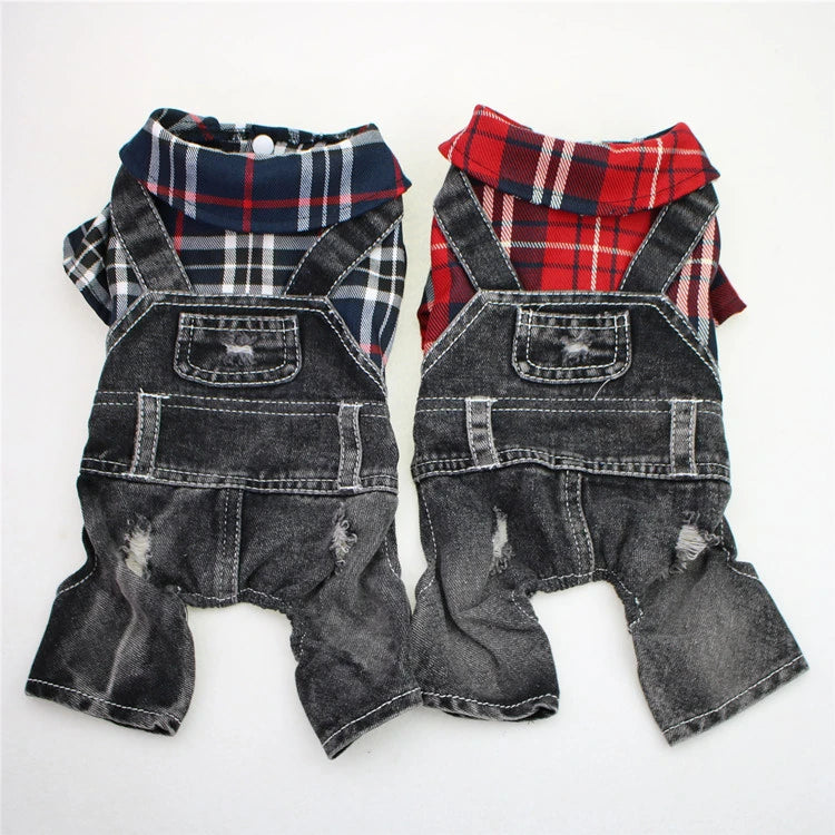 Pet Dog Denim Jumpsuit Plaid Hoodies Overalls For Dogs Yorkie Chihuahua Clothes for Small Dogs Spring Puppy Jeans Jacket Outfit