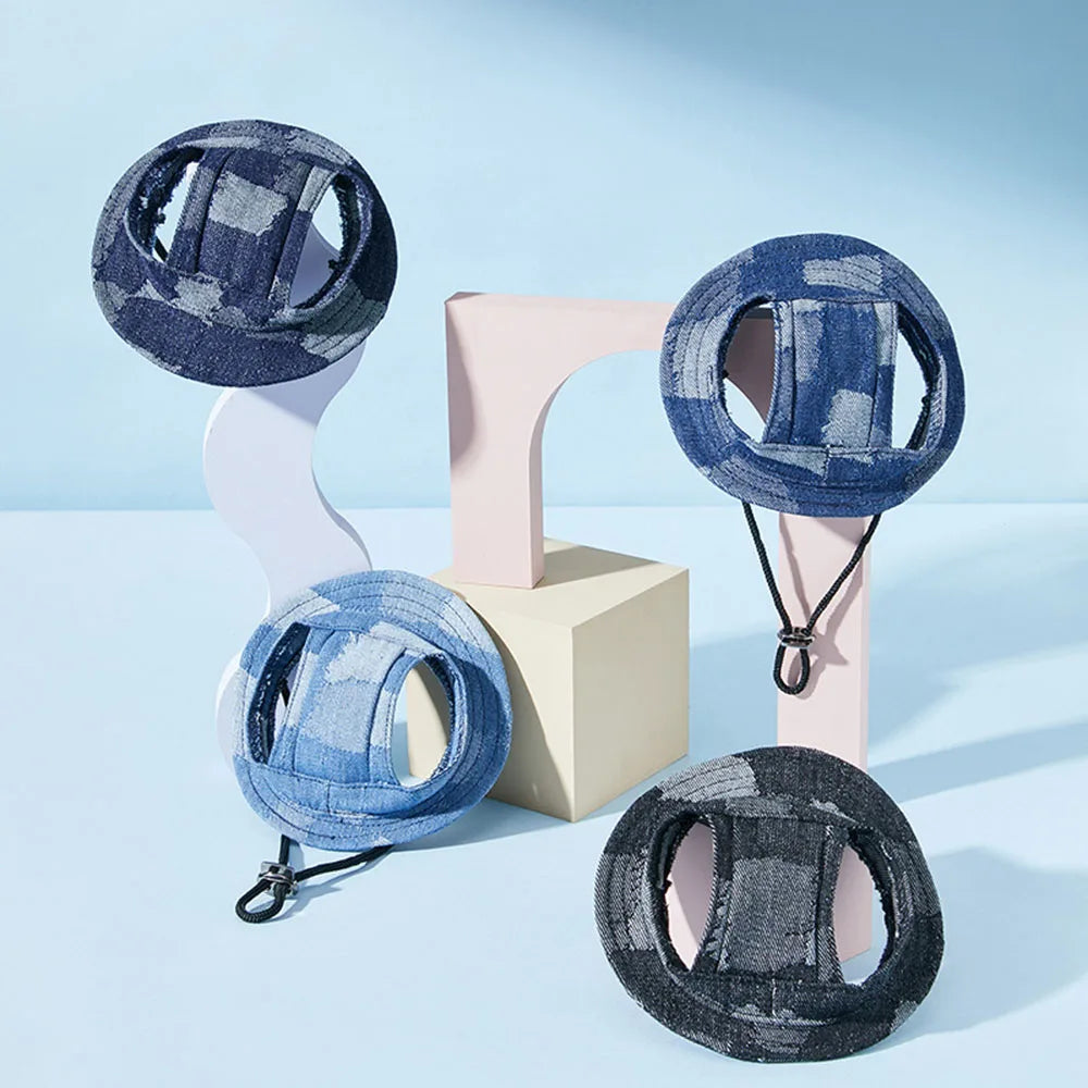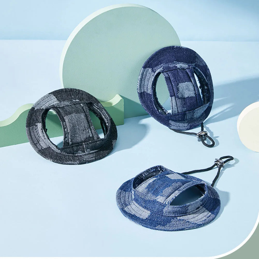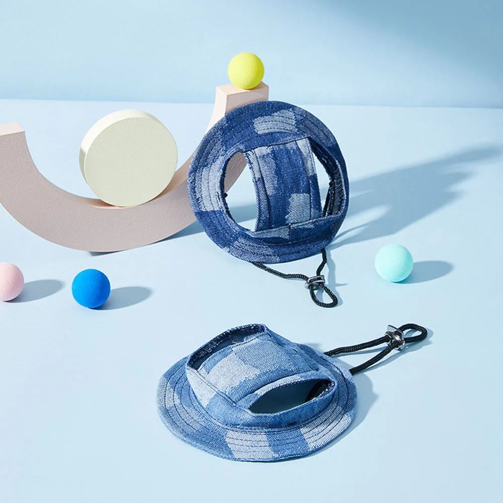 Casual Dog Hat Round Dog Cap with Ear Holes for Puppy Pet Grooming Dress Up Hat Summer Dog Canvas Sun Cap Bonnet Visor for Pug