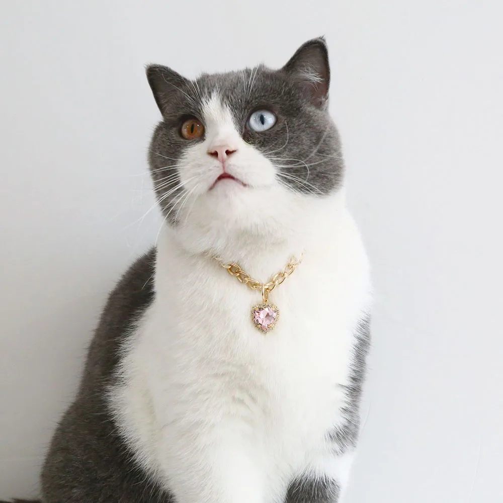 Cat Collar Dog Princess Love Cat Necklace Handmade Birthday Party Necklace Cat Accessories Pet Puppy Crystal Diamond Pendant