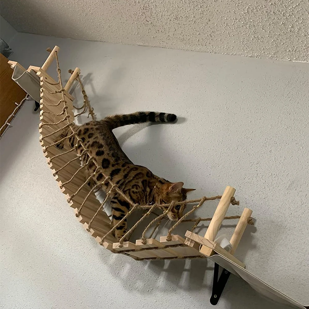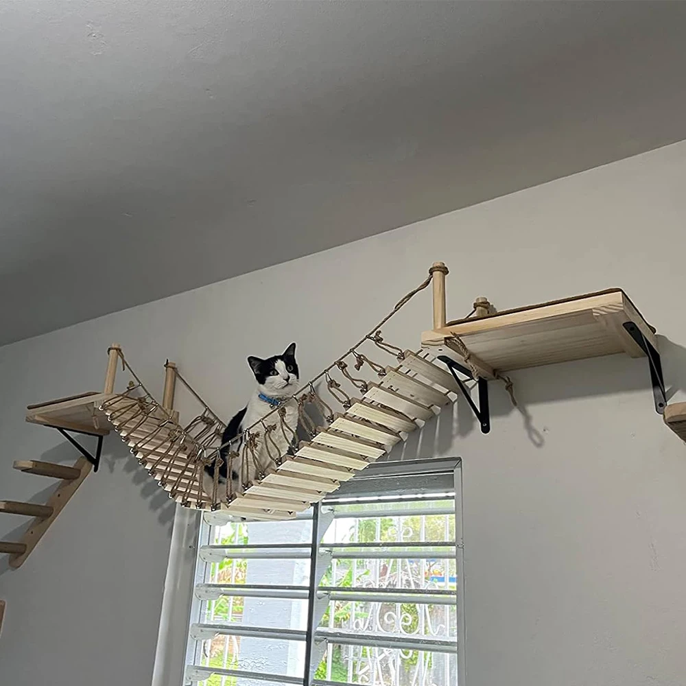 Cat Wall Shelves 100CM Long Cat Bridge for Indoor Cats Climber Cloud Shelf Kitty Bed and Perches Wooden Cat Wall Furniture