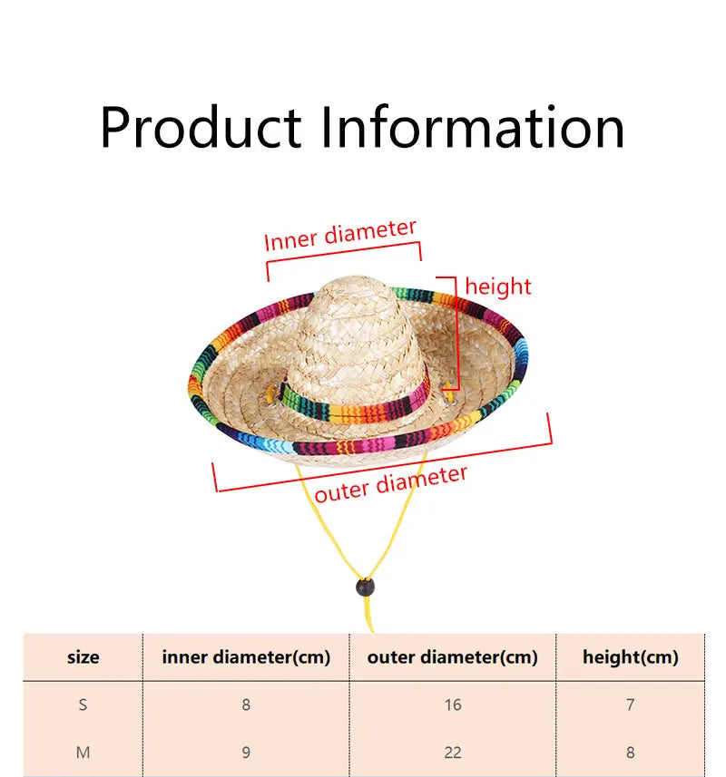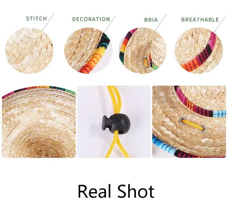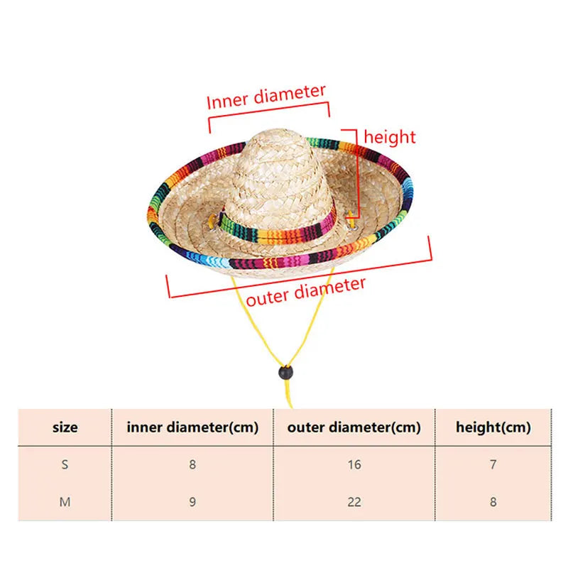 Chinese Tradition Straw Hats for Dogs Wig Mexico Style Puppy Costume Cat Outfit Cat Supplies Pet Accessories for Small Animal
