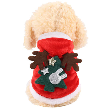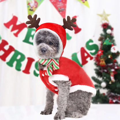Christmas Dog Clothes Hoodie Pet Dog Sweater Flannel Antlers Scarf Winter Warm Small Dog Outfit Cat Hooded Clothing Costume Coat