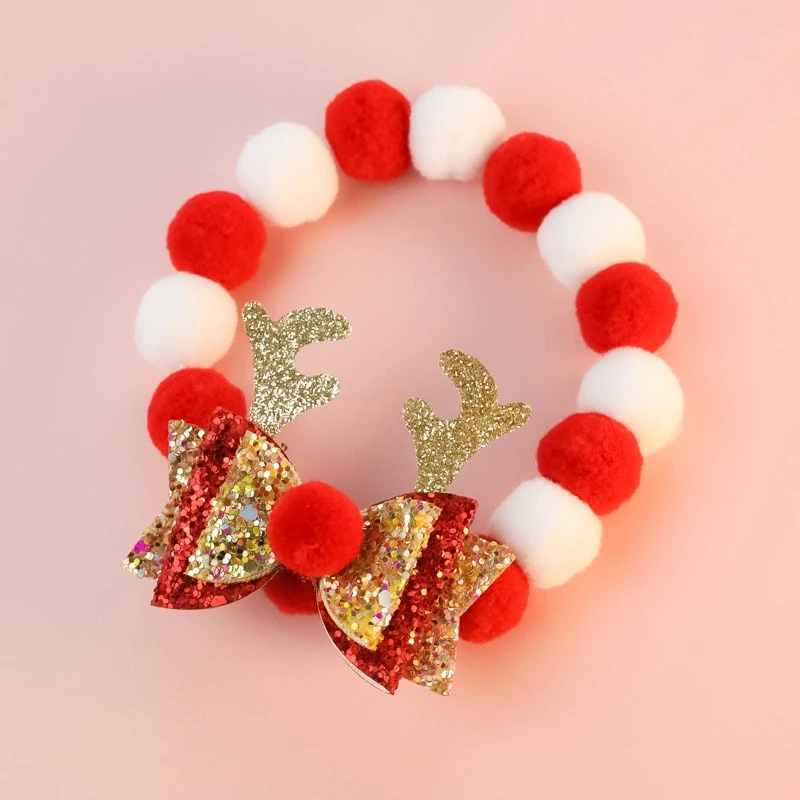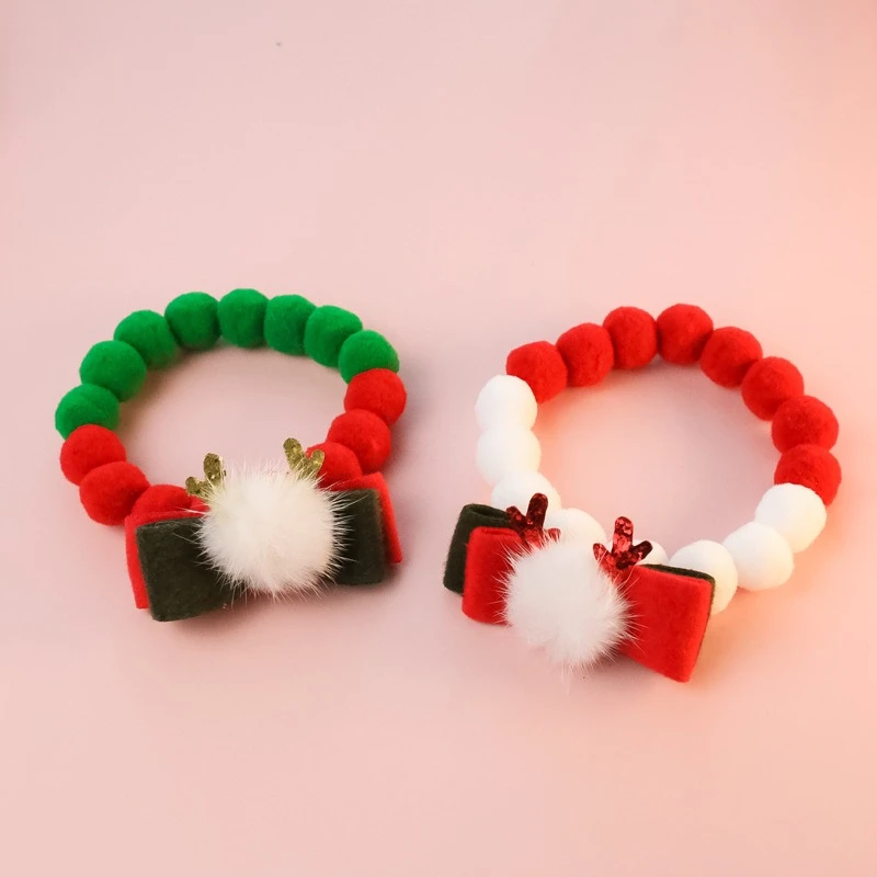 Christmas Necklace for Pet Dogs Sequins Bow Knot Candy Green Fluffy Chihuahua Small Puppy Collars Designer Fancy Cat Accessories