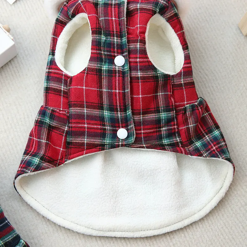 Christmas Plaid Clothes Thermal Fleece Lined Dog Winter Dress Coat with Luxury Faux Fur Collar for Small Dogs Puppy York Beagle