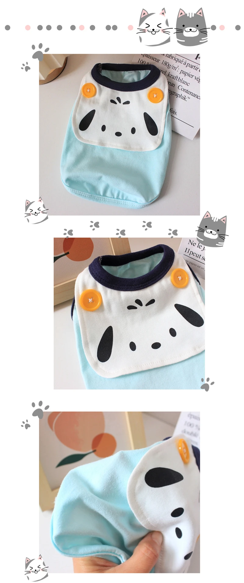 Cotton Solid Puppy Summer Clothes Button Decoration Cute Cartoon Vest for Chihuahua One Piece Unisex Daily Wear Pet Cat Clothing