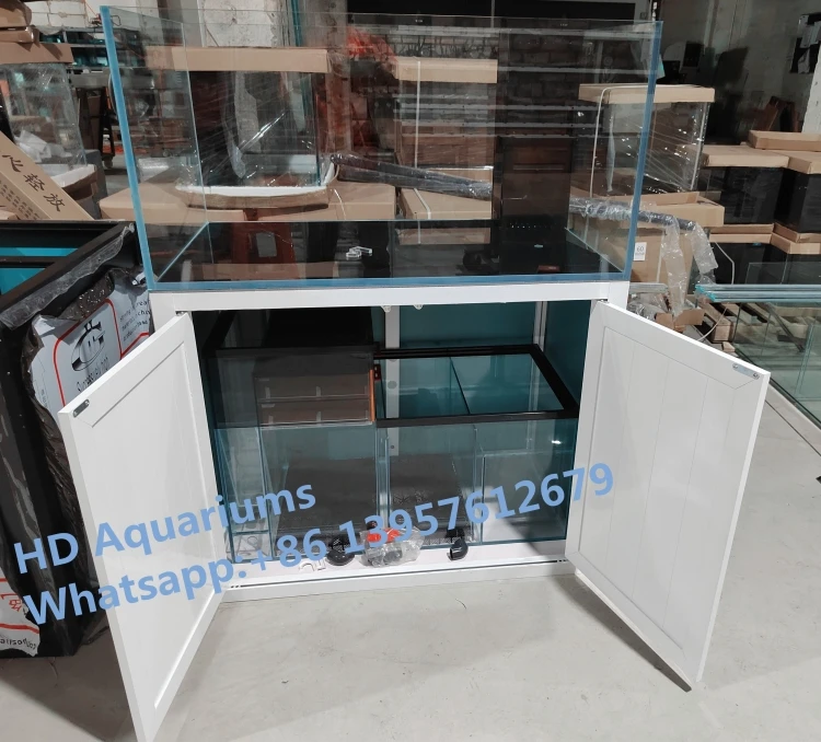 Customized Sizes large and medium fish tank aquariums for marine and freshwater with overflow sump cabinet